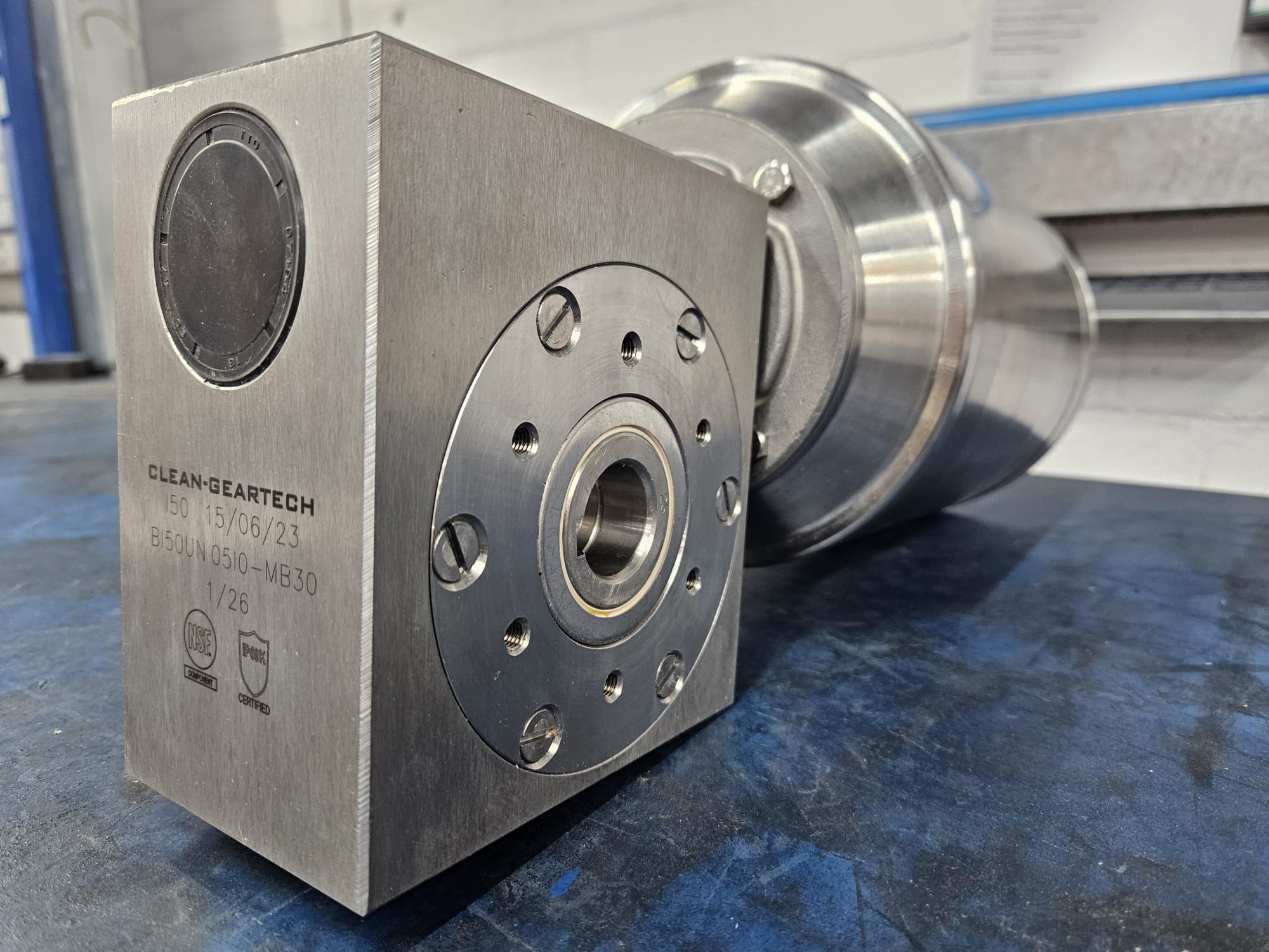Clean-Geartech stainless steel geared motor with food grade lubricant for a same day courier delivery to a poultry production facility