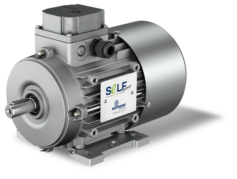 The SELF Power motor is an ecological hybrid electric motor halfway between an asynchronous motor and a reluctance motor. After an asynchronous start-up, the motor synchronizes with the working frequency and runs synchronously at a constant speed (without encoder) regardless of the load.