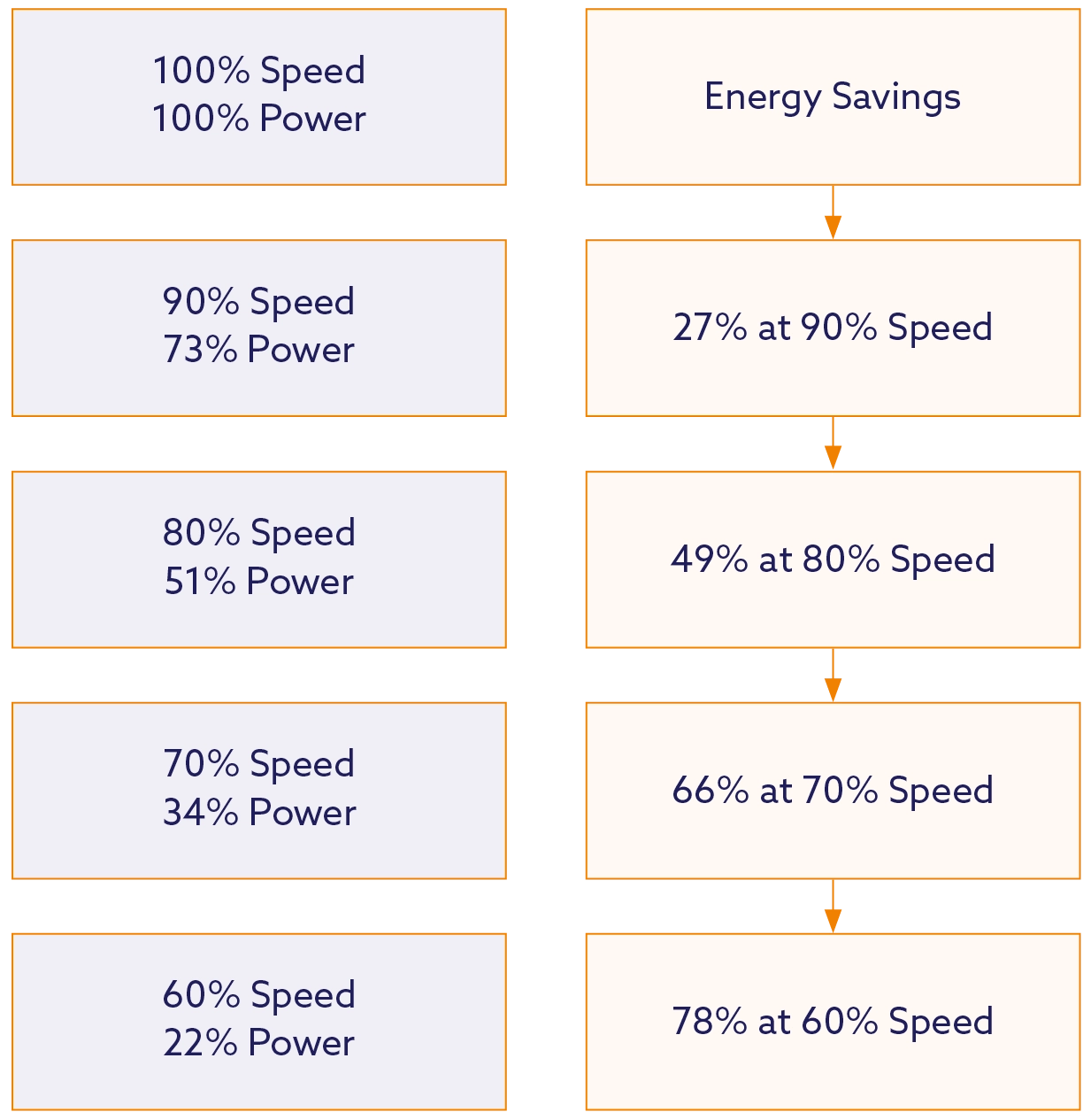 For centrifugal machines, the relationship between speed and power consumption follows cube law behaviour: